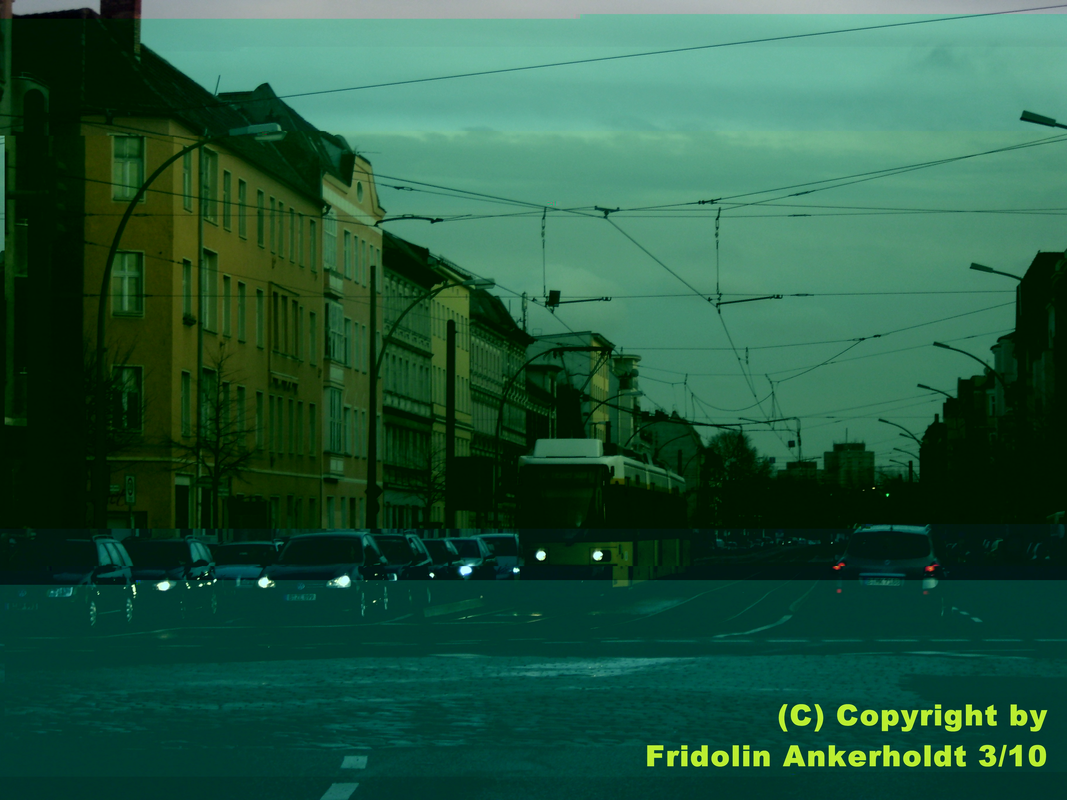 die meisten von Euch werden sicher wissen, daß ich die Tram in Berlin am liebsten ganz und gar einstellen würde - besser heute als morgen. Andererseits muß ich mich, solange es dieses Ding gibt, irgendwie damit arrangieren. Da ich insbesondere den letzten Teil dieses Themas doch recht interessant fand, zeige ich jetzt einfach mal eine Aufnahme, die ein langjähriger Freund von mir vor einigen Jahren in der Kniprodestr. gemacht hat...