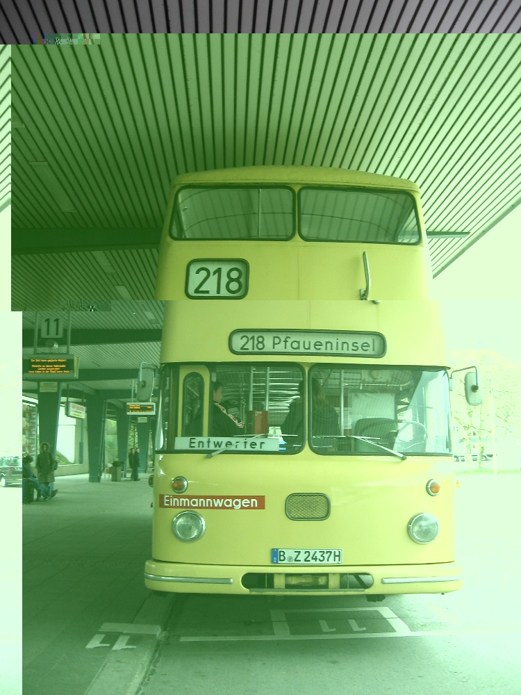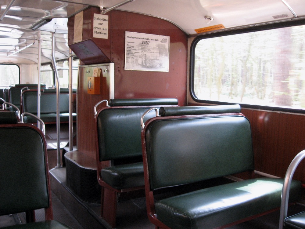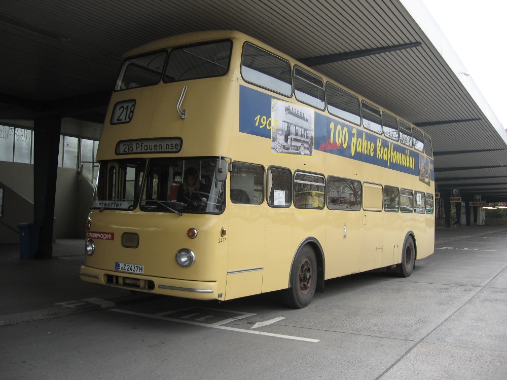 Neben der wunderschönen Fahrstrecke gehört der alte BVG-Doppeldecker vom Typ DE zu den Hauptattatraktionen auf der Linie 218. Alle zwei Stunden pendelt die "fahrende Legende" aus den Siebzigern zwischen Pfaueninsel und Theodor-Heuss-Platz. Besondere Kennzeichen: Dunkelgrüne Plastiksitze und das typische Fahrgeräusch dieser ersten Generation von "Einmannwagen". Denn -lang ists her- vorher waren Busse üblich, die mit Fahrer und Schaffner doppelt besetzt waren.