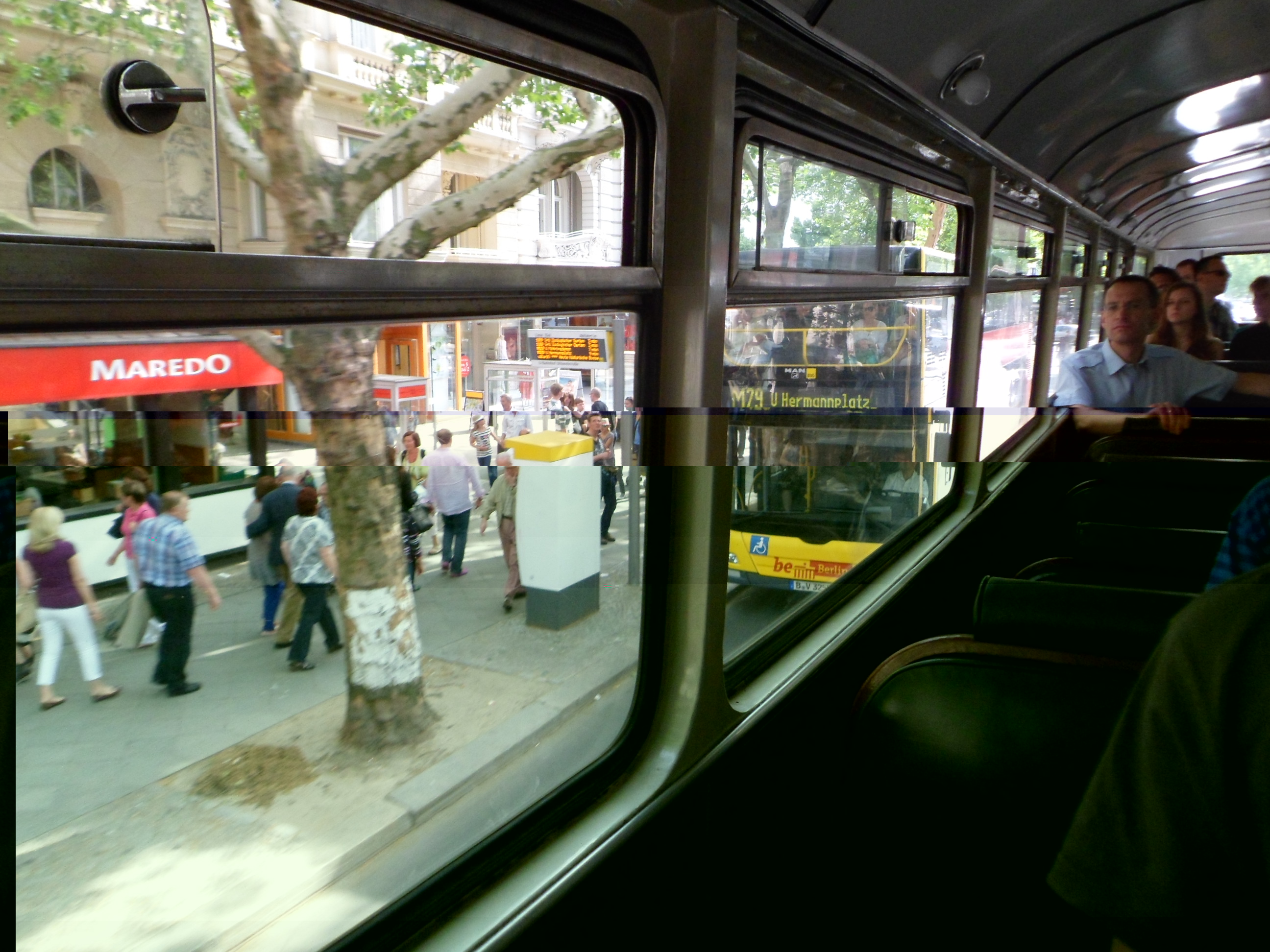 Hier noch der Blick aus einem der ältesten Doppeldecker auf einen Vertreter der neuesten Doppeldeckergeneration: