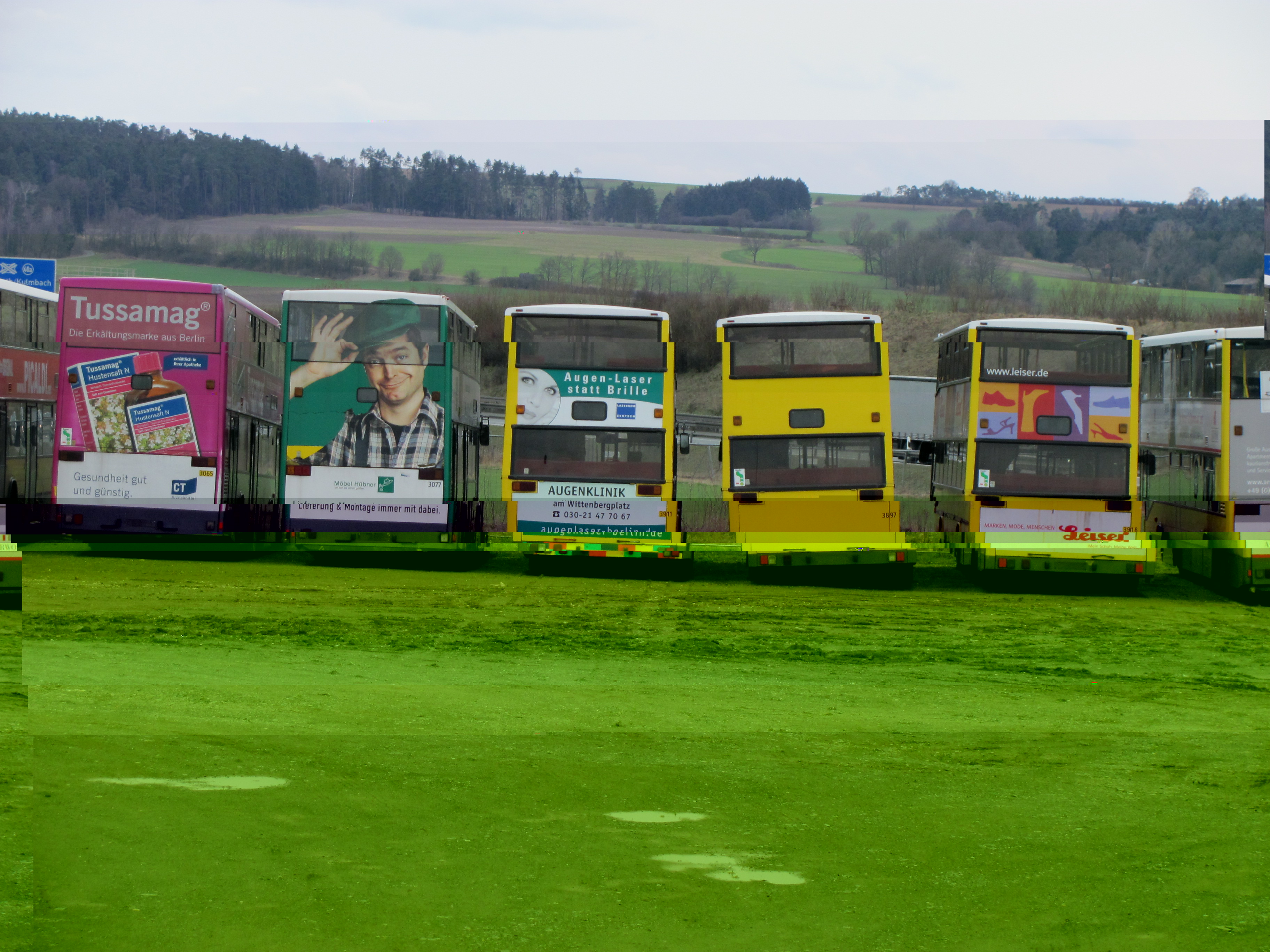 Ich kann mich auch nicht mehr hundertprozentig erinnern, ob die Busse noch zugelassen waren, aber wenn mich nicht alles täuscht standen da alle ohne Kennzeichen rum.